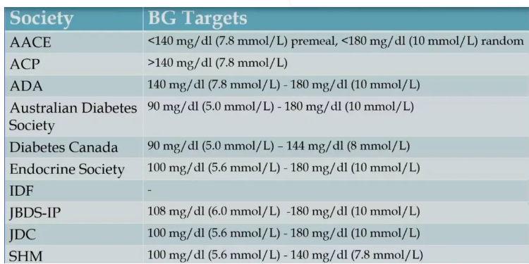 图1. 医院内糖尿病与高血糖管理的控制目标
