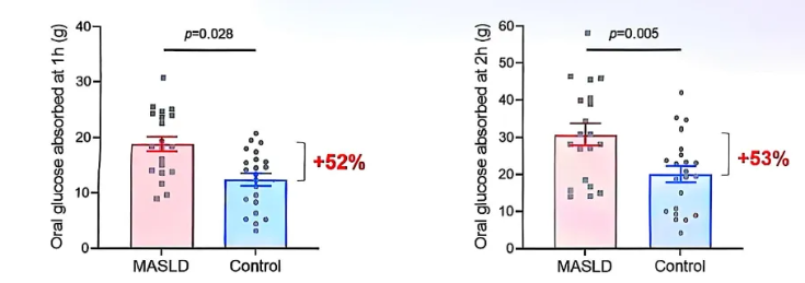 图2. MASLD及对照组口服葡萄糖吸收情况(图引自讲者摘要或幻灯)