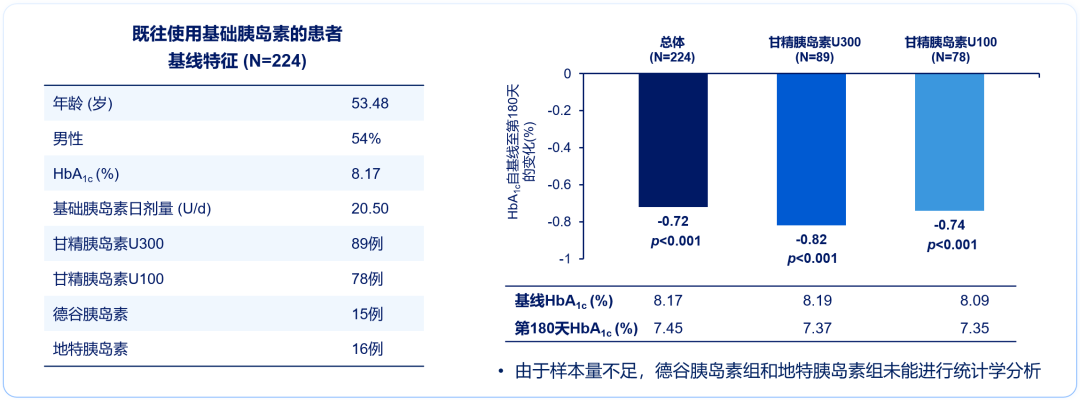 该亚组分析结果显示,在真实世界中,既往接受基础胰岛素治疗的中国成人T2DM患者,转换为德谷胰岛素利拉鲁肽治疗可以显著改善血糖控制。