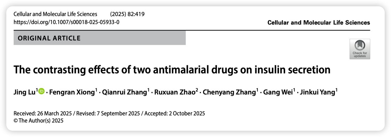 参考文献:1.Lu, J., Xiong, F., Zhang, Q., Zhao, R., Zhang, C., Wei, G., & Yang, J. (2025). The contrasting effects of two antimalarial drugs on insulin secretion. Cellular and molecular life sciences : CMLS, 82(1), 419. https://doi.org/10.1007/s00018-025-05933-0
