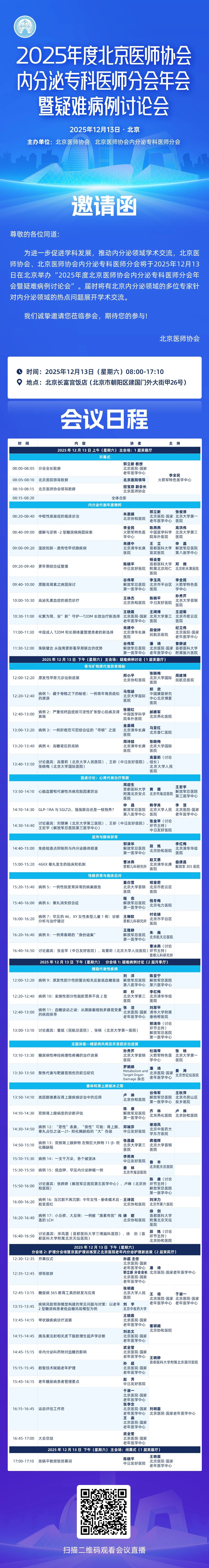 为推动内分泌学科发展,促进学术交流与临床实践融合,北京医师协会与北京医师协会内分泌专科医师分会将于2025年12月13日在北京隆重举办“2025年度北京医师协会内分泌专科医师分会年会暨疑难病例讨论会”。