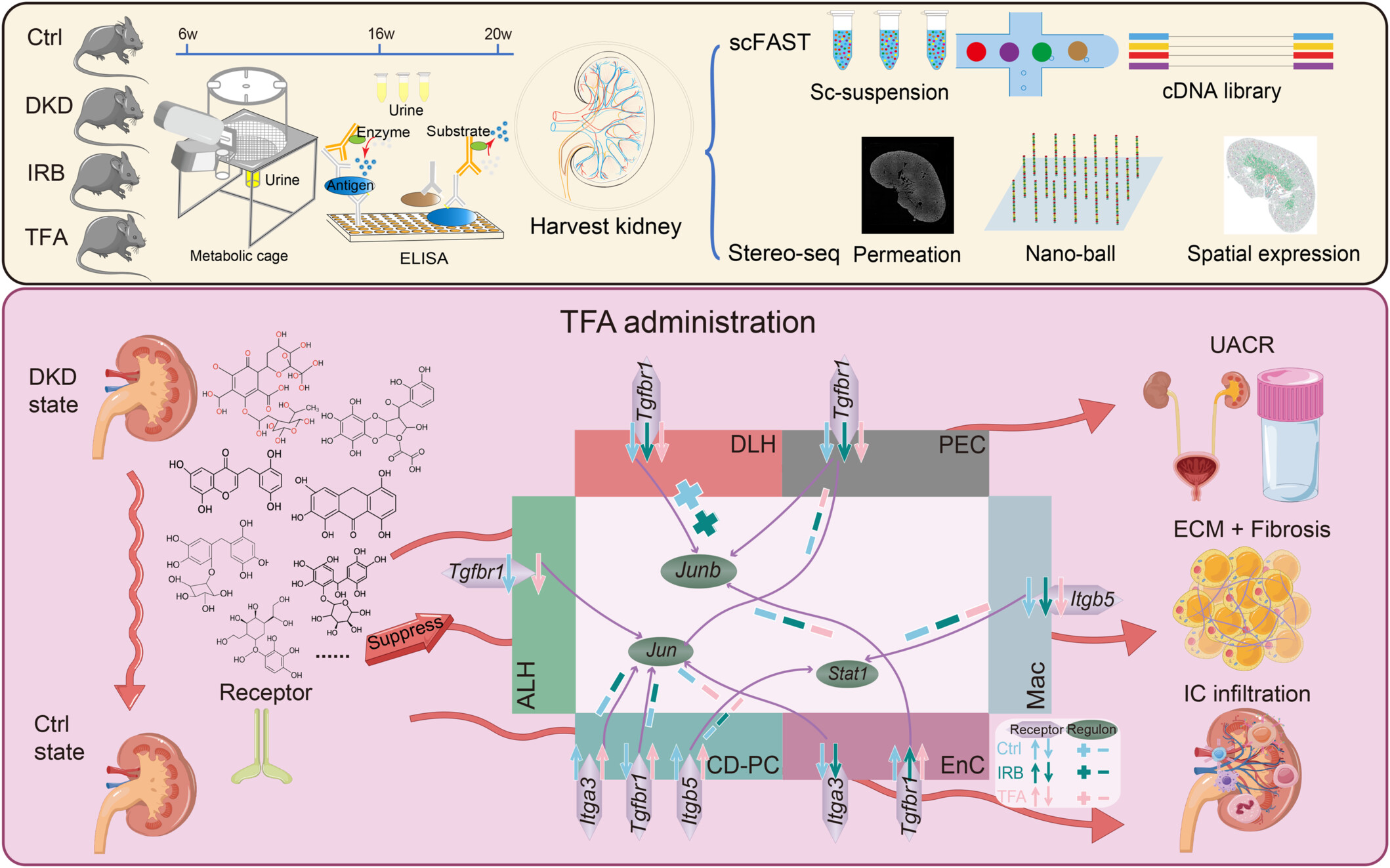 DKD的进展主要伴随着两大病理过程:持续的炎症反应和不可逆的肾纤维化。这项研究有力地揭示了TFA是如何同时作用于这两大核心的。