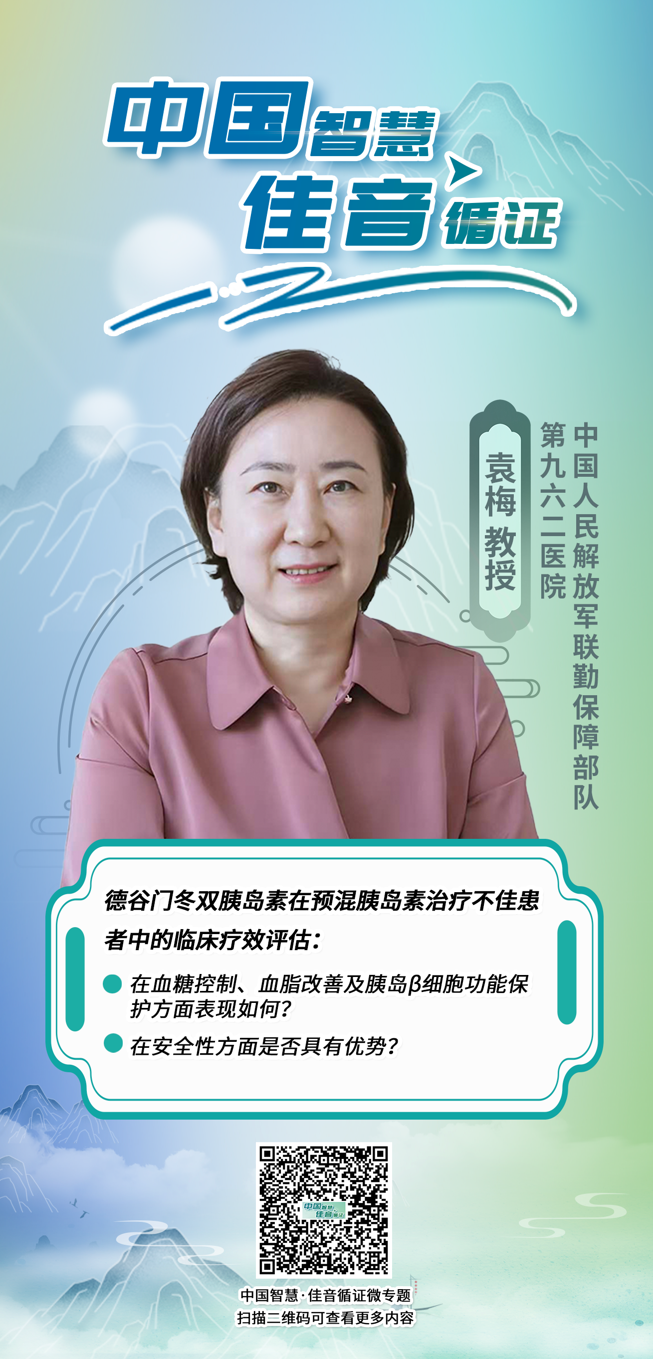在2型糖尿病(T2DM)患者中,预混胰岛素虽为常用治疗方案,但部分患者血糖控制仍不达标,且低血糖风险较高,亟需更优的个体化治疗策略。德谷门冬双胰岛素的出现,为患者带来了“双效合一”的新选择,它既能够长效平稳地控制血糖,又能快速有效地覆盖餐后血糖。那么,对于预混胰岛素治疗效果欠佳的患者而言,德谷门冬双胰岛素的临床疗效到底如何呢?1月22日,我们将邀请中国人民解放军联勤保障部队第九六二医院的袁梅教授,以“预混胰岛素治疗不佳人群中德谷门冬双胰岛素的疗效”为主题,系统探讨其疗效、安全性及个体化应用前景。