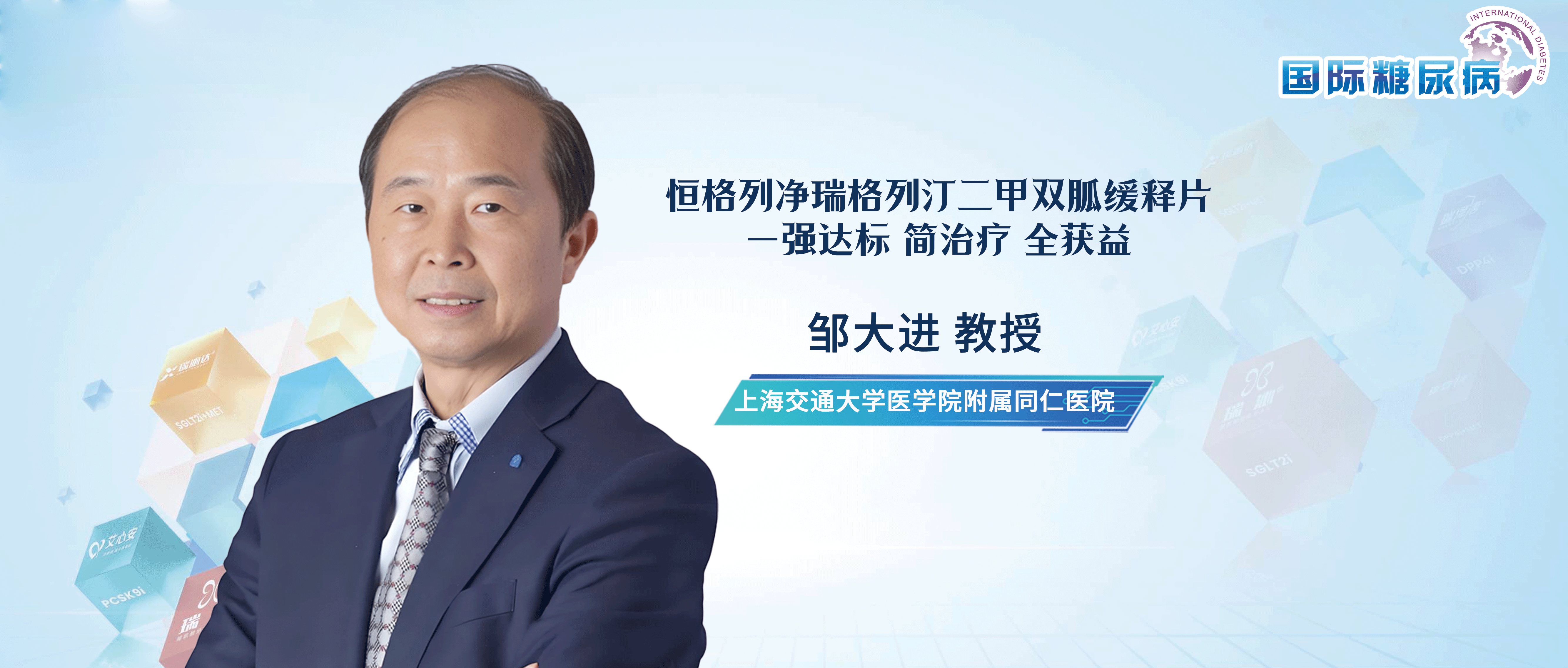 糖尿病缓解是2型糖尿病(T2DM)重要干预目标,然而国内一项大型研究显示高达78.2%患者糖化血红蛋白(HbA1c)未达到指南推荐的目标值(<7.0%)[1]。在此背景下,全球首个钠-葡萄糖共转运蛋白2抑制剂(SGLT2i)+二肽基肽酶4抑制剂(DPP-4i)+二甲双胍三联固定复方制剂——恒格列净瑞格列汀二甲双胍缓释片(商品名:瑞乐唐®)于2025年10月获批上市,以协同机制、简化方案和综合获益为治疗带来新突破。为深入解析糖尿病缓解路径、厘清临床症结、阐释该制剂价值,本刊特邀上海交通大学医学院附属同仁医院邹大进教授,结合研究数据与临床经验展开专业解读,为临床实践与患者管理提供科学指引。