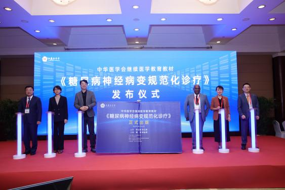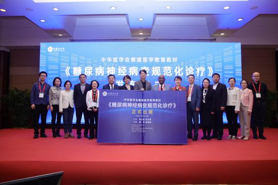 (图:《糖尿病神经病变规范化诊疗》教材于发布会现场签发)