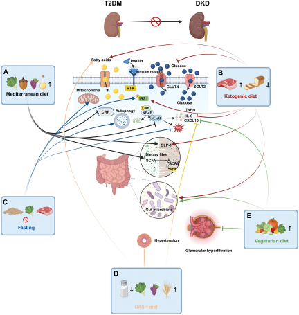 糖尿病肾病(DKD)作为2型糖尿病(T2DM)最为常见且危害严重的并发症之一,既是诱发终末期肾病的首要病因,还会进一步加剧心血管疾病等合并症的发生与进展。临床常规应用的降压、降糖药物虽可有效控制基础症状与核心指标,却难以逆转肾脏结构与功能损伤的进程。据Food & Function近期在线综述,整合多项研究结果表明,地中海饮食、生酮饮食、间歇性禁食、终止高血压膳食疗法(DASH)与素食等规范化饮食干预,可成为延缓甚至阻止T2DM进展为DKD的核心策略。