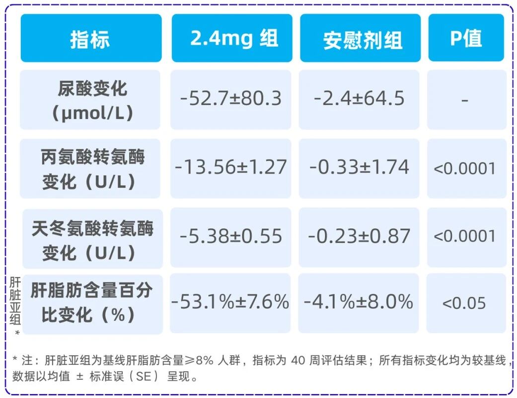 表1. 埃诺格鲁肽改善肝功能和尿酸水平[4]