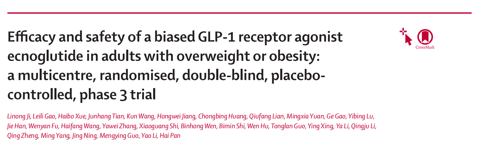 4. Ji L, et al. Efficacy and safety of a biased GLP-1 receptor agonist ecnoglutide in adults with overweight or obesity: a multicentre, randomised, double-blind, placebo-controlled, phase 3 trial. Lancet Diabetes Endocrinol. 2025; 13(9): 777-789. 2 comments