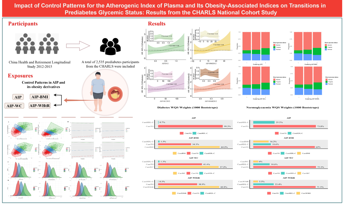 编者按:糖尿病前期是血糖代谢紊乱的“关键可逆窗口”,但如何精准识别哪些人会进展为糖尿病、哪些人有望恢复正常血糖,一直是临床难点。近期,一项发表于Lipids inHealth and Disease的研究基于中国健康与养老追踪调查(CHARLS)全国队列数据,首次系统探讨了血浆致动脉硬化指数(AIP)及其肥胖相关指标(AIP-BMI、AIP-WC、AIP-WHtR)的动态控制模式与糖尿病前期血糖状态转归的关联。研究揭示,动态监测这些指标,或将为糖尿病前期人群的风险分层和干预提供新依据。
