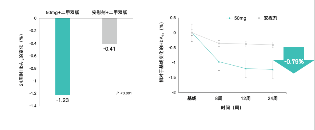 除降糖外,森格列汀联合方案还带来额外获益:显著改善胰岛β细胞功能(24周时50 mg组提升14.1%,100 mg组提升16.2%,优于二甲双胍单药);并降低收缩压。提示该联合方案在降糖之外具有一定的综合代谢改善作用,有助于从源头上延缓疾病进展。