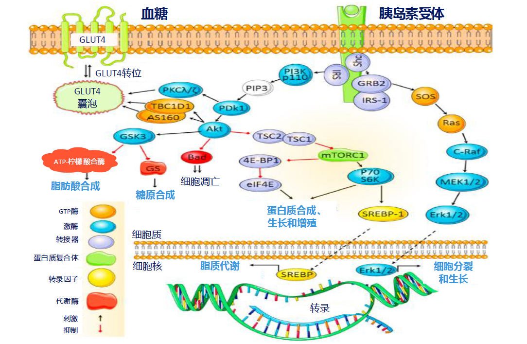 图1. 胰岛素与糖、蛋白、脂肪代谢